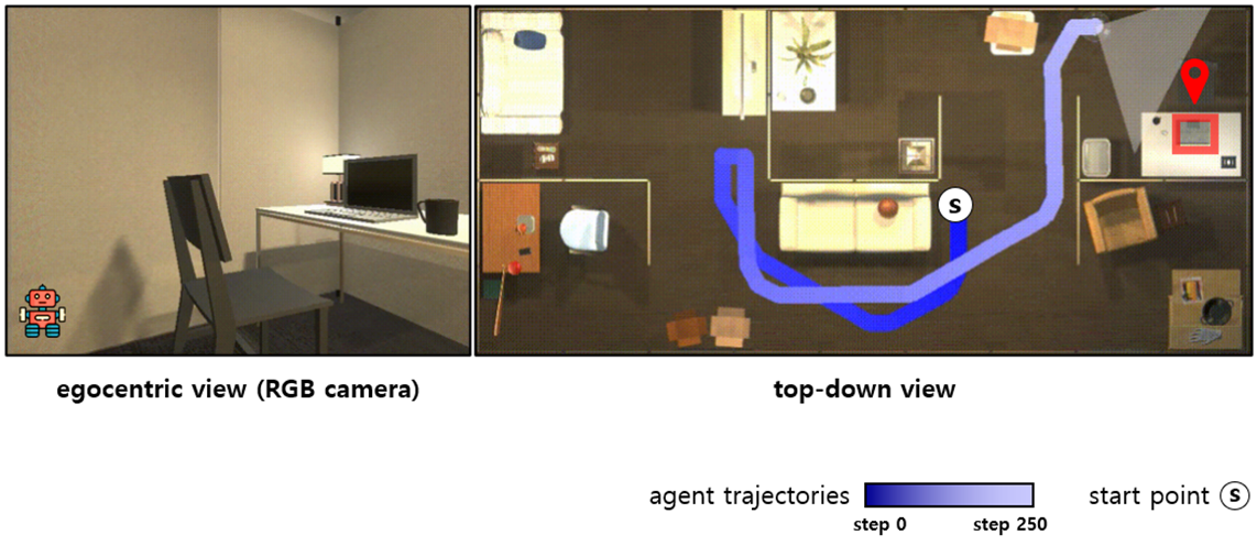 · 이해한 시각적 맥락을 바탕으로 목표 물체까지 효율적으로 이동하기 위해서는 최적의 행동 정책 계획 또는 학습 능력이 요구됨